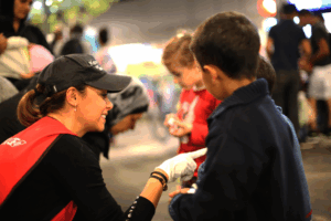 Diese Offenheit dürfte ein Teil der Erklärung sein, warum sich Train of Hope im Herbst 2015 so rasend schnell entwickelte und zunächst am Wiener Hauptbahnhof binnen weniger Tage eine Infrastruktur schaffen konnte, die tausenden ankommenden bzw. durchreisenden Migrant:innen zielgerichtete Erstversorgung bieten konnte. Mit dabei zu sein bei der Verteilung von warmen Mahlzeiten, dem Organisieren von Schlafplätzen, Rechtsberatung etc. war Empowerment pur – und zwar für alle Beteiligten. Es waren keine abgebrühten Profis am Werk, sondern Menschen, die schlicht und einfach taten, was im Moment getan werden musste. Manuela Ertl, eine der Aktivist:innen der ersten Stunde, formuliert deren Beweggründe so: „Der Staat hat versagt – die Wiener Bevölkerung wollte nicht dabei zuschauen, die Menschen haben uns leidgetan…“ Nach wenigen Wochen konstituierte sich die spontan entstandene Bewegung als Verein um sowohl leichter mit Behörden kooperieren zu können als auch den freiwilligen Helfer:innen – über 6.000 Personen – ein Mindestmaß an Absicherung zu gewährleisten.